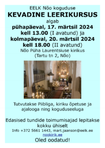 A/a nr EE23 1010 1520 0609 1003, SEB (saaja: EELK Nõo Kogudus)